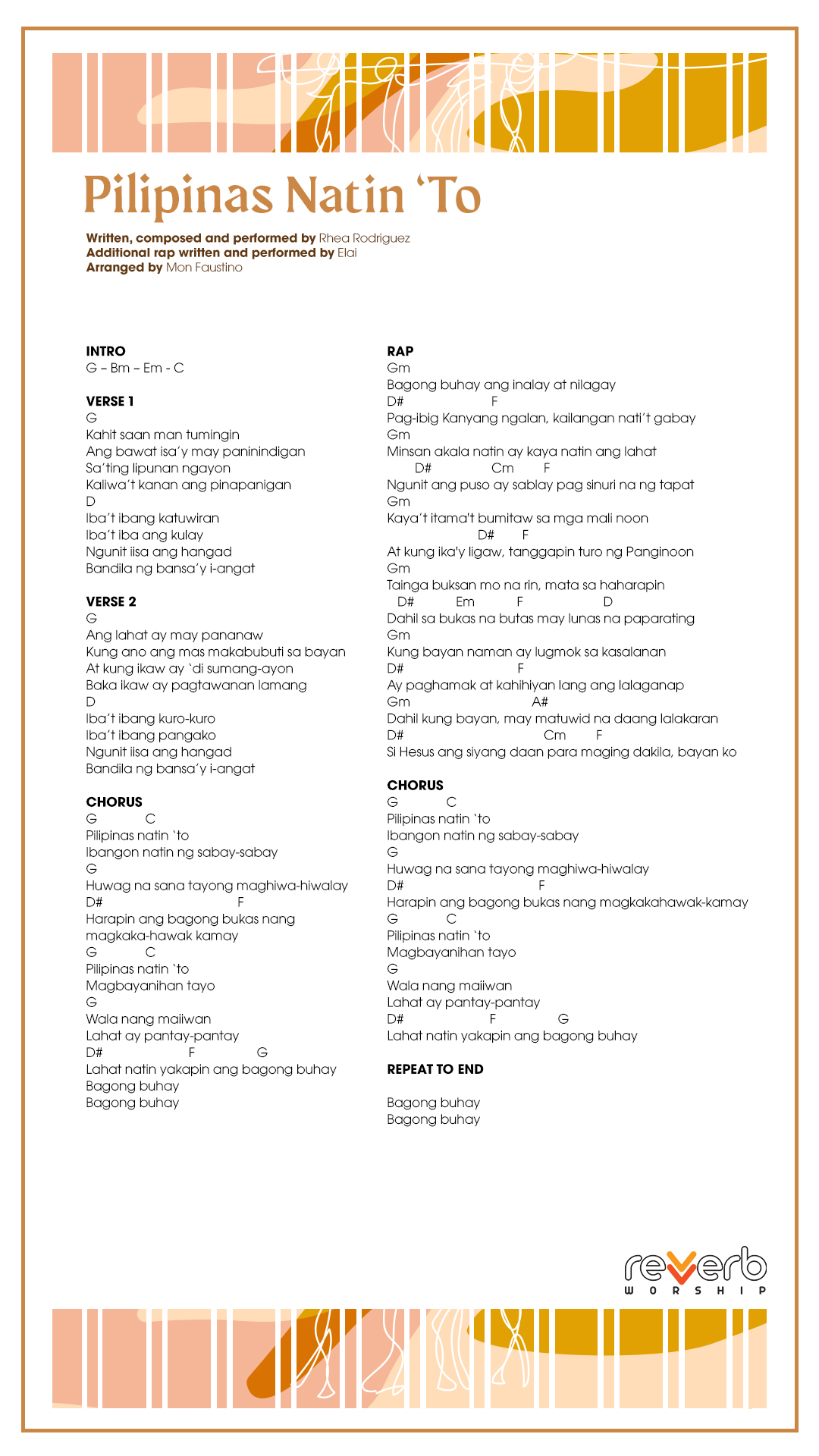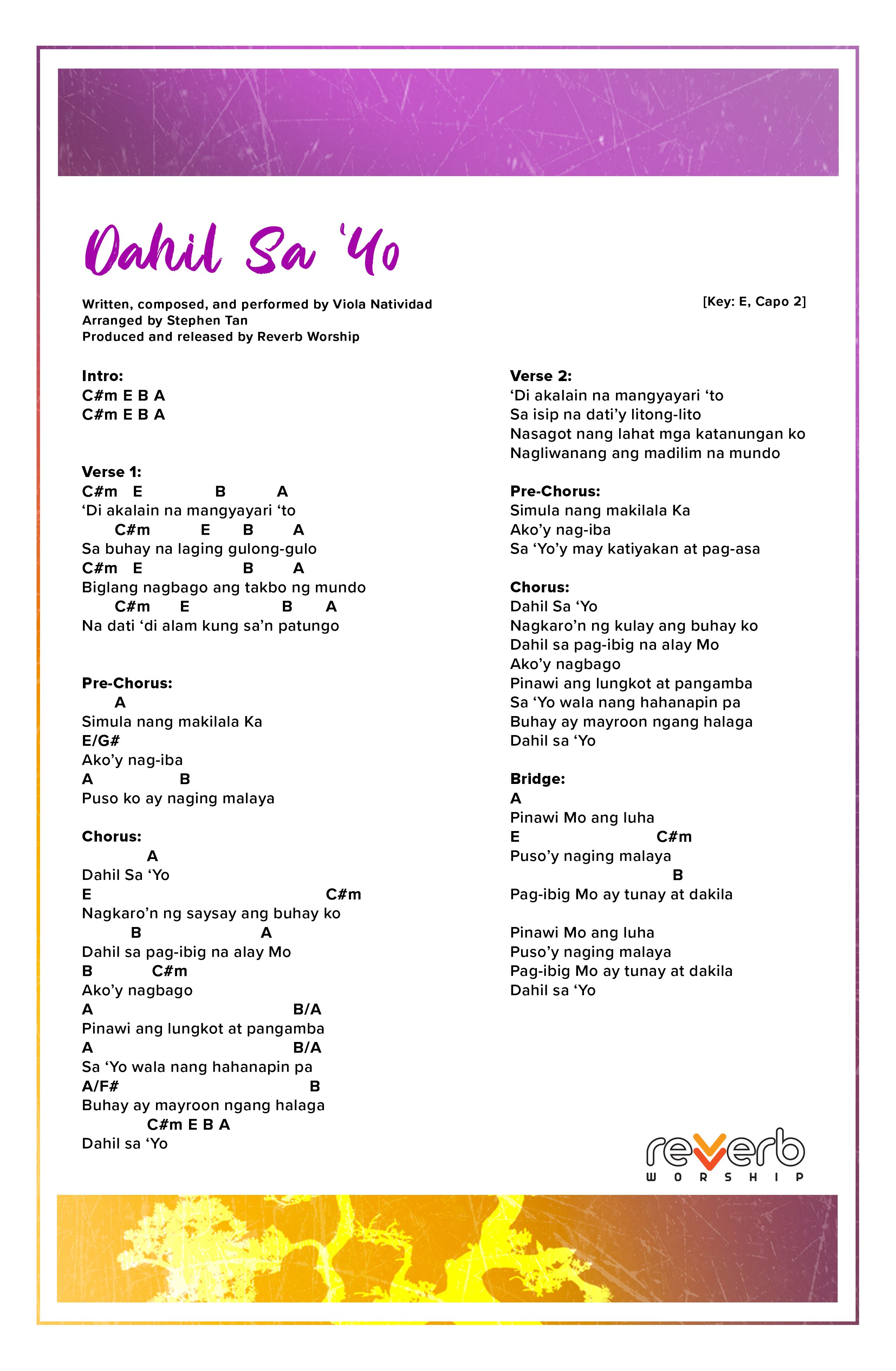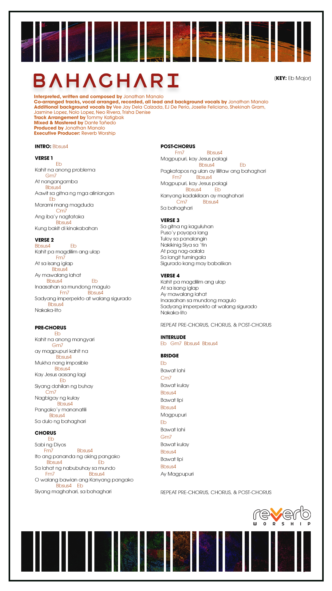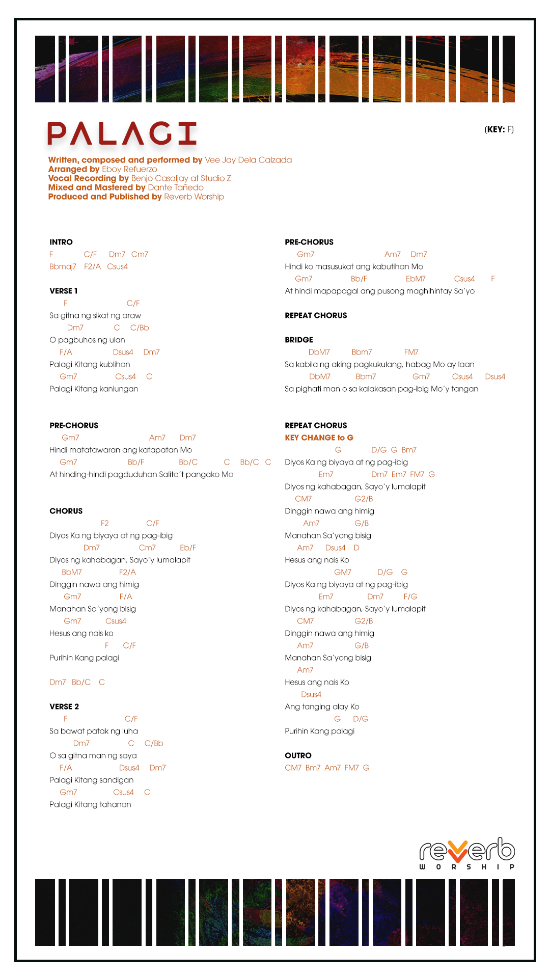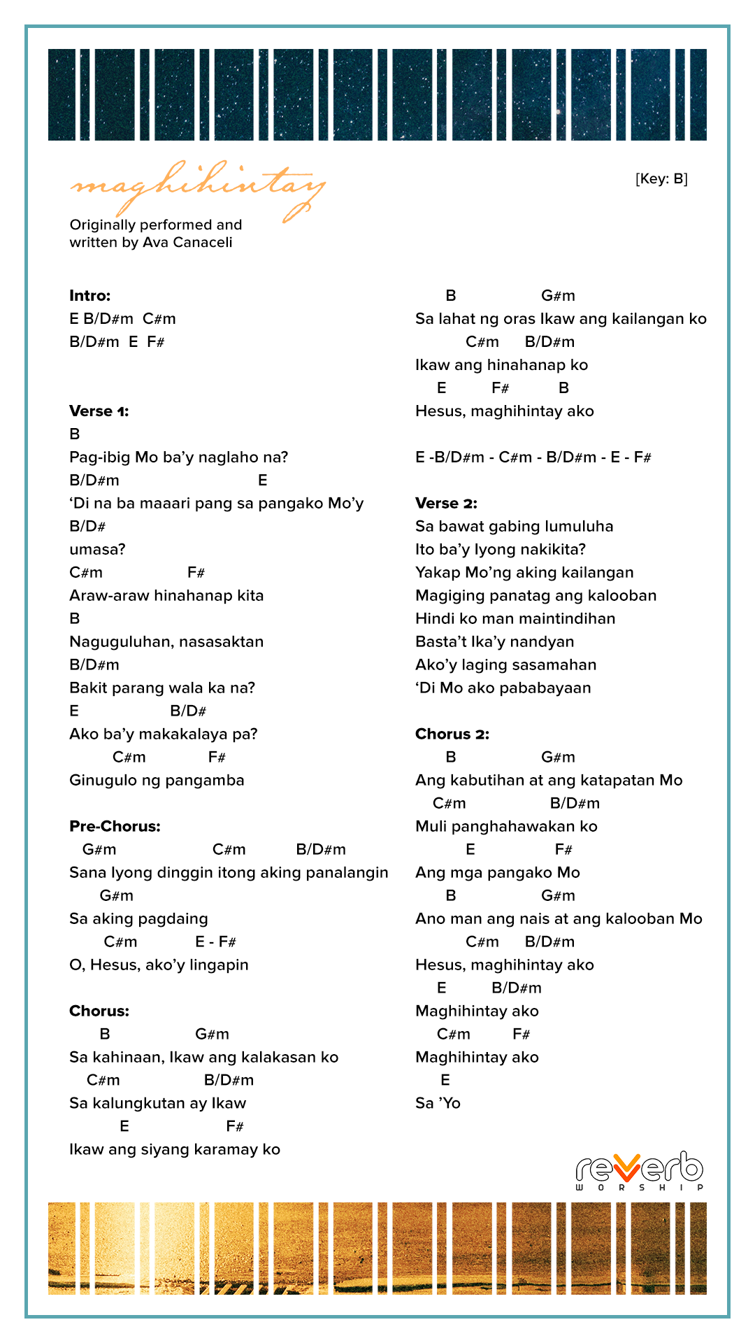 Record your own covers or sing our songs during your church services’ praise and worship line-up. FREE lyrics, chord charts, and minus ones for all Reverb Worship original songs are available for your personal use.